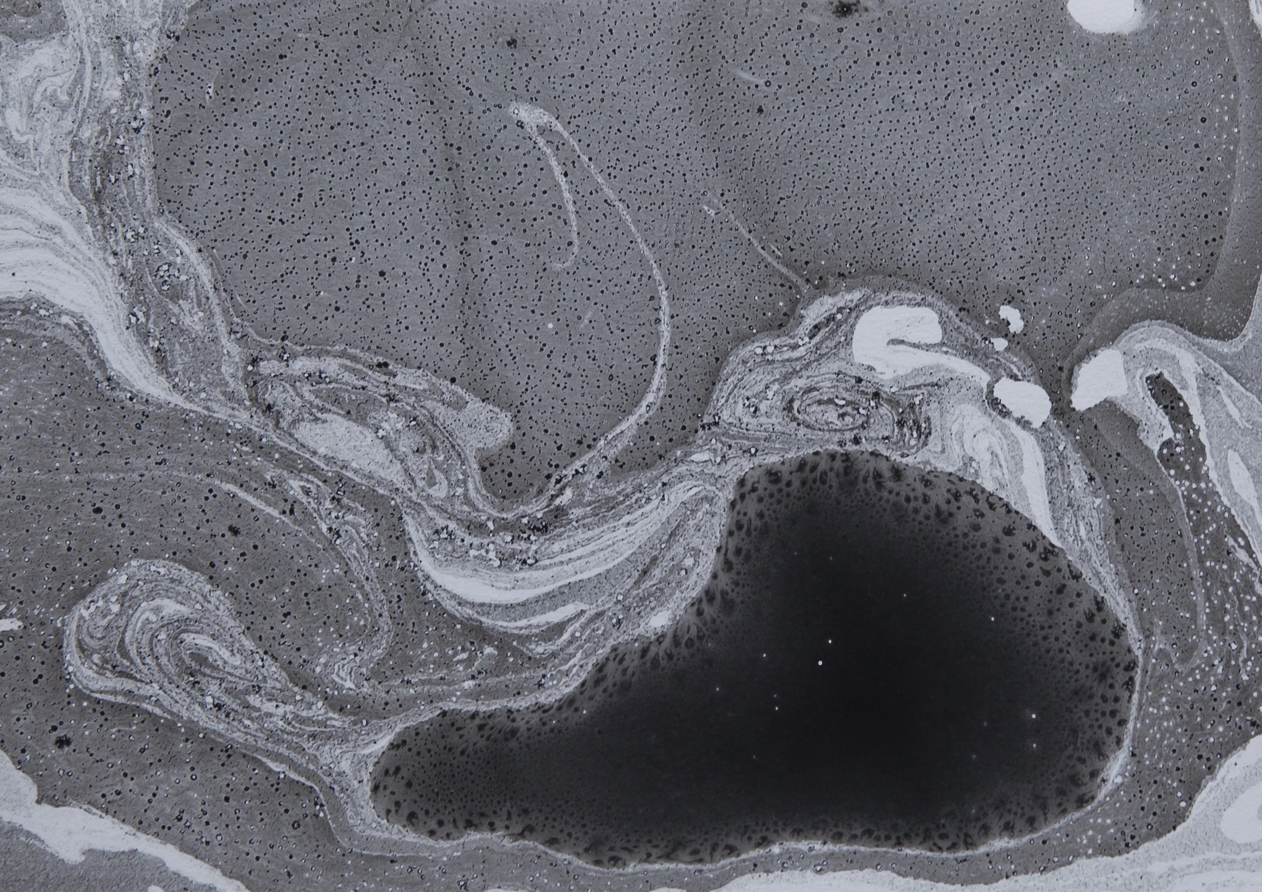 Telle une alchimiste, elle s’essaye à retranscrire la poésie mystérieuse du vivant en explorant cette thématique cellulaire par le biais de différentes techniques; impression d’encres flottantes sur papier (suminagashi), peinture sur toile ou encore dessins à l’encre.